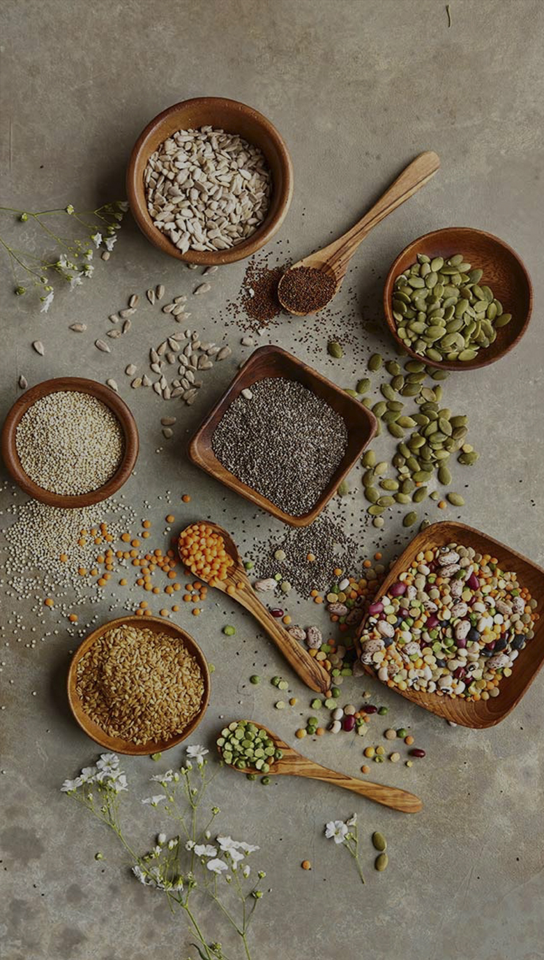 Grasas vegetales saludables: Todas las semillas son una buena fuente de grasas saludables, principalmente de tipo poliinsaturado. Dentro de ellas es destacable el aporte de Omega 3 que tienen por ejemplo las semillas de lino.