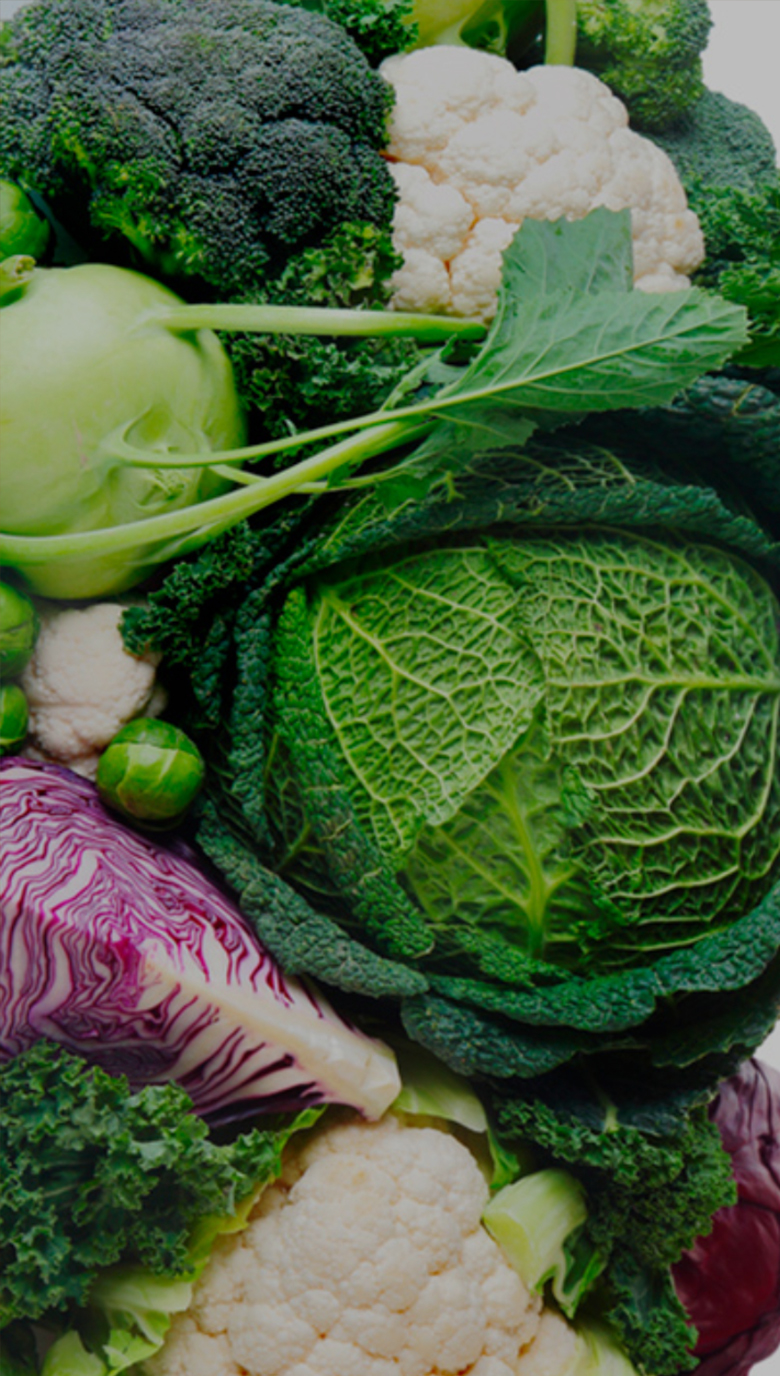 | Rucula | Brocoli | Coles de Bruselas | Repollo | Coliflor |